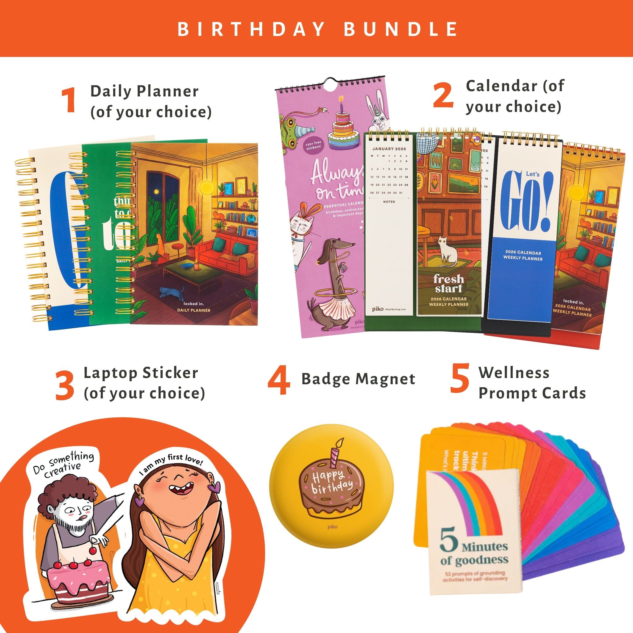 Birthday Bundle | Planner, Calendar, Wellness Cards, Magnet & Stickers